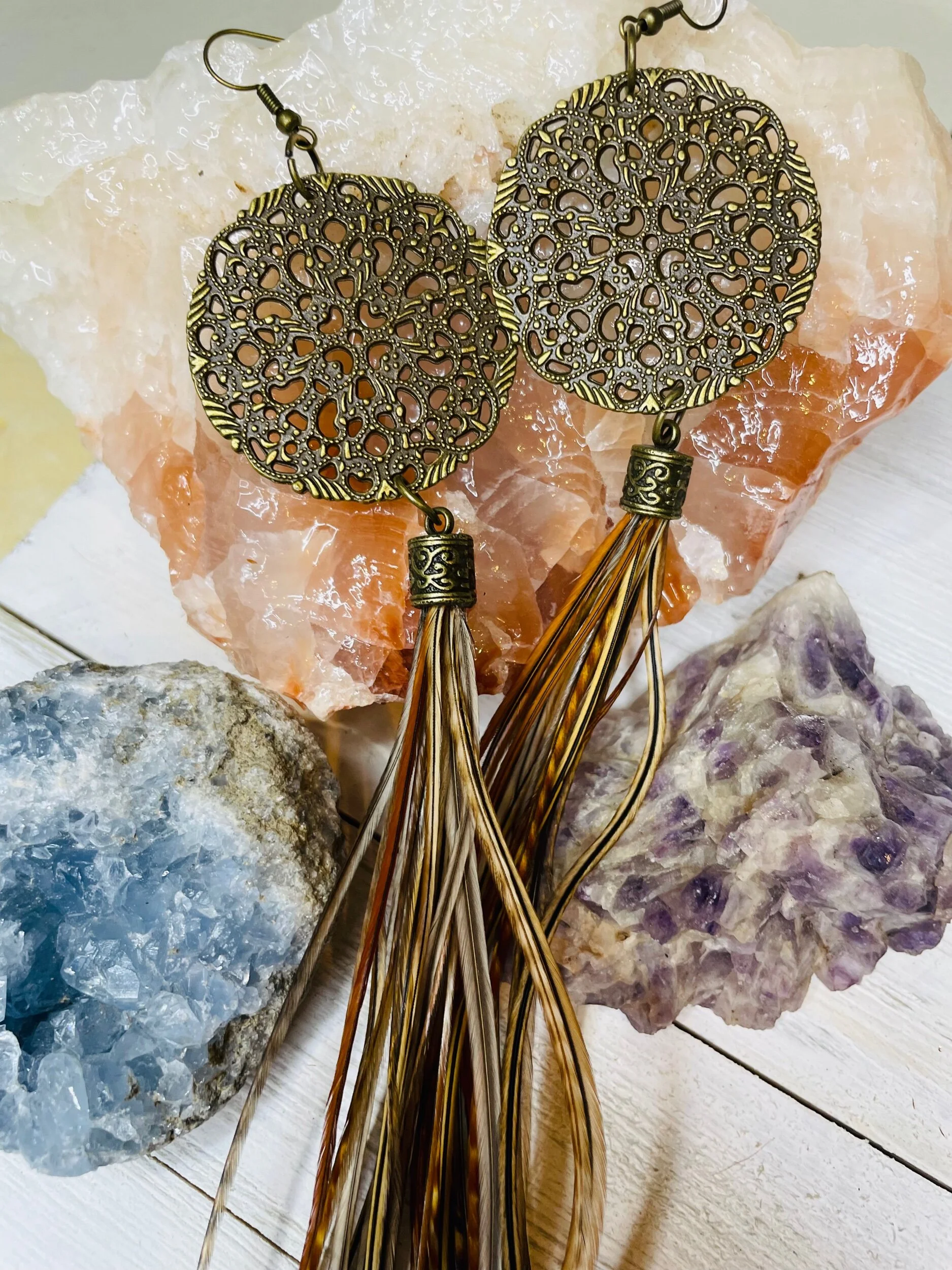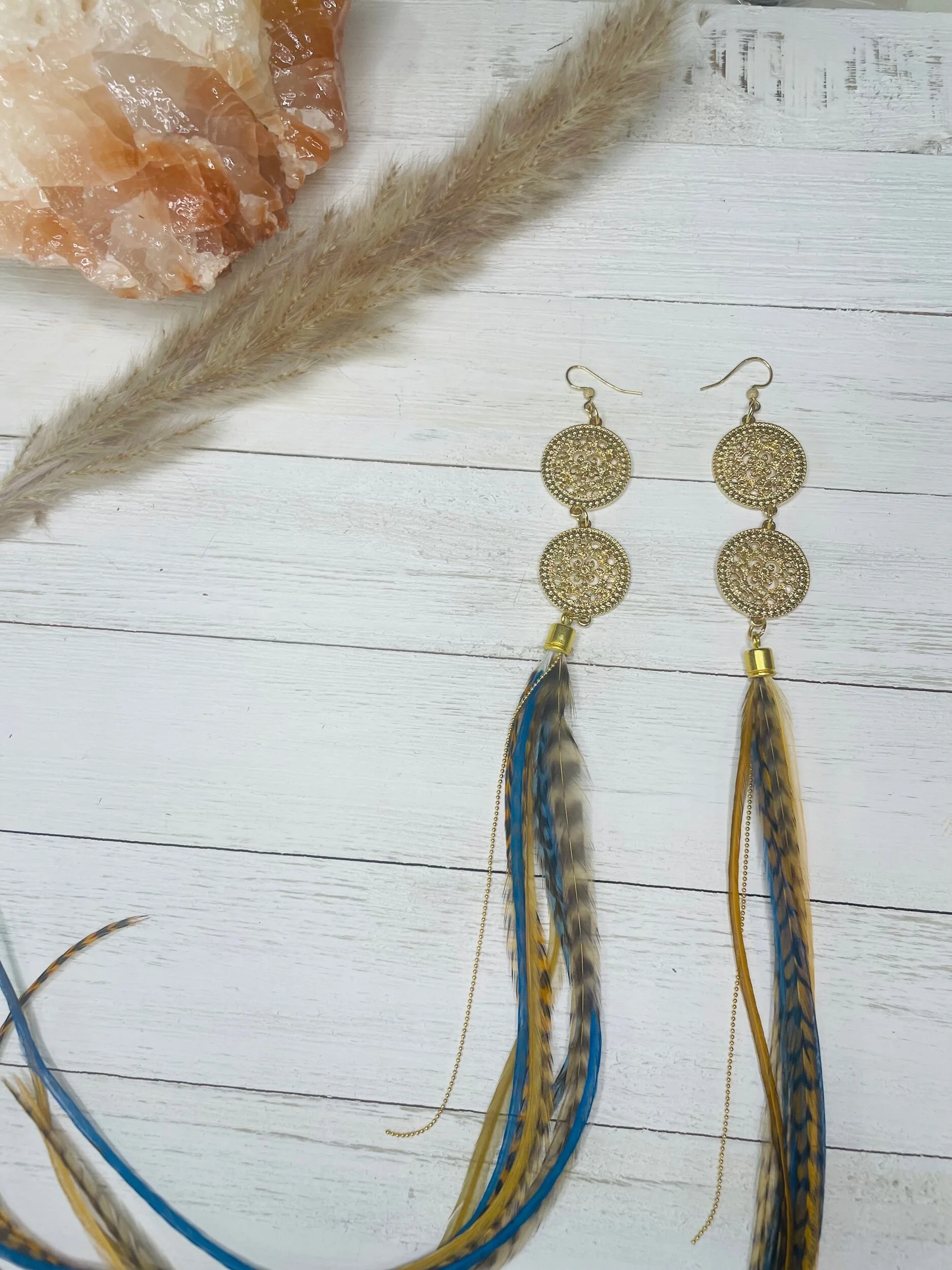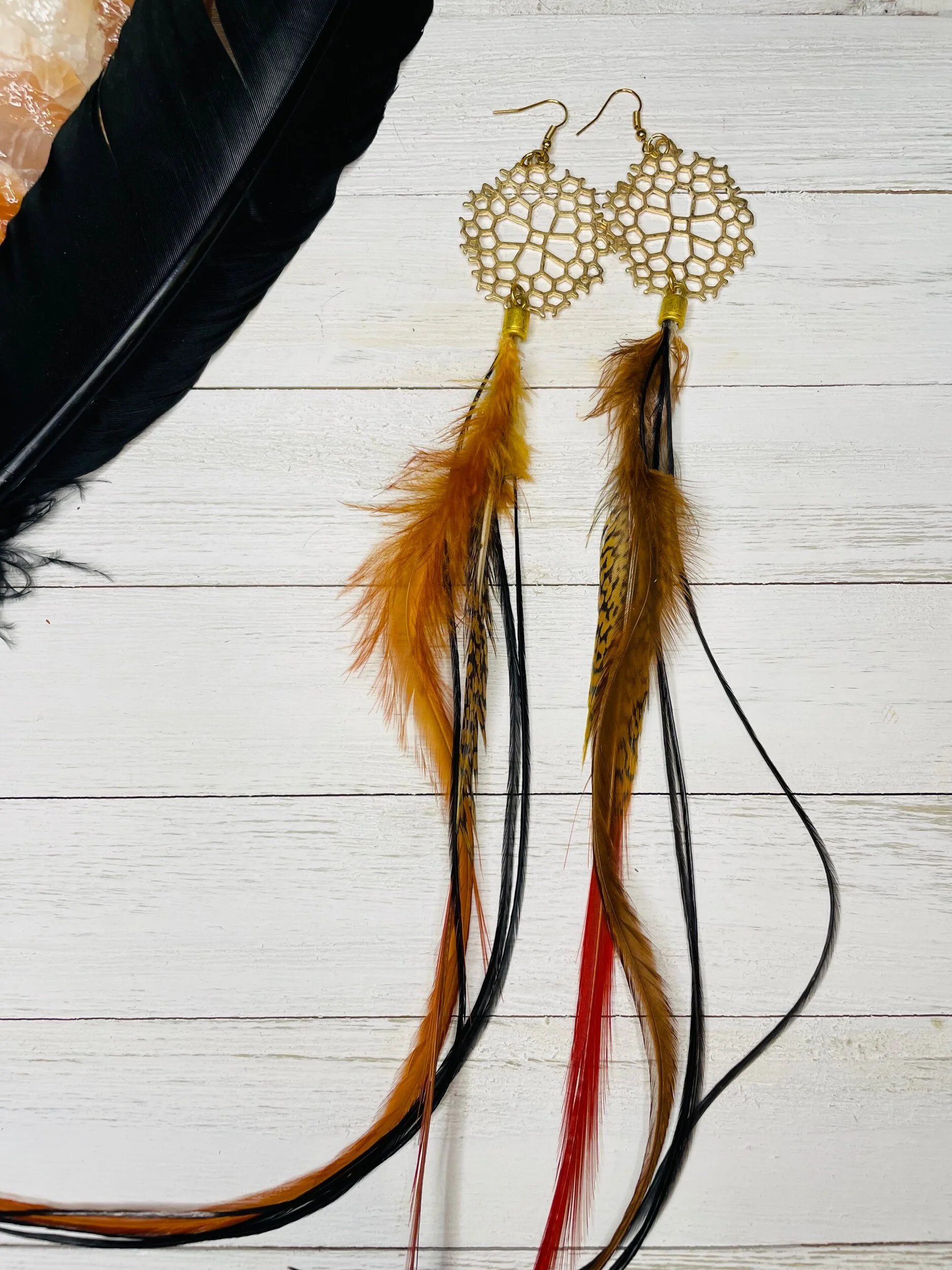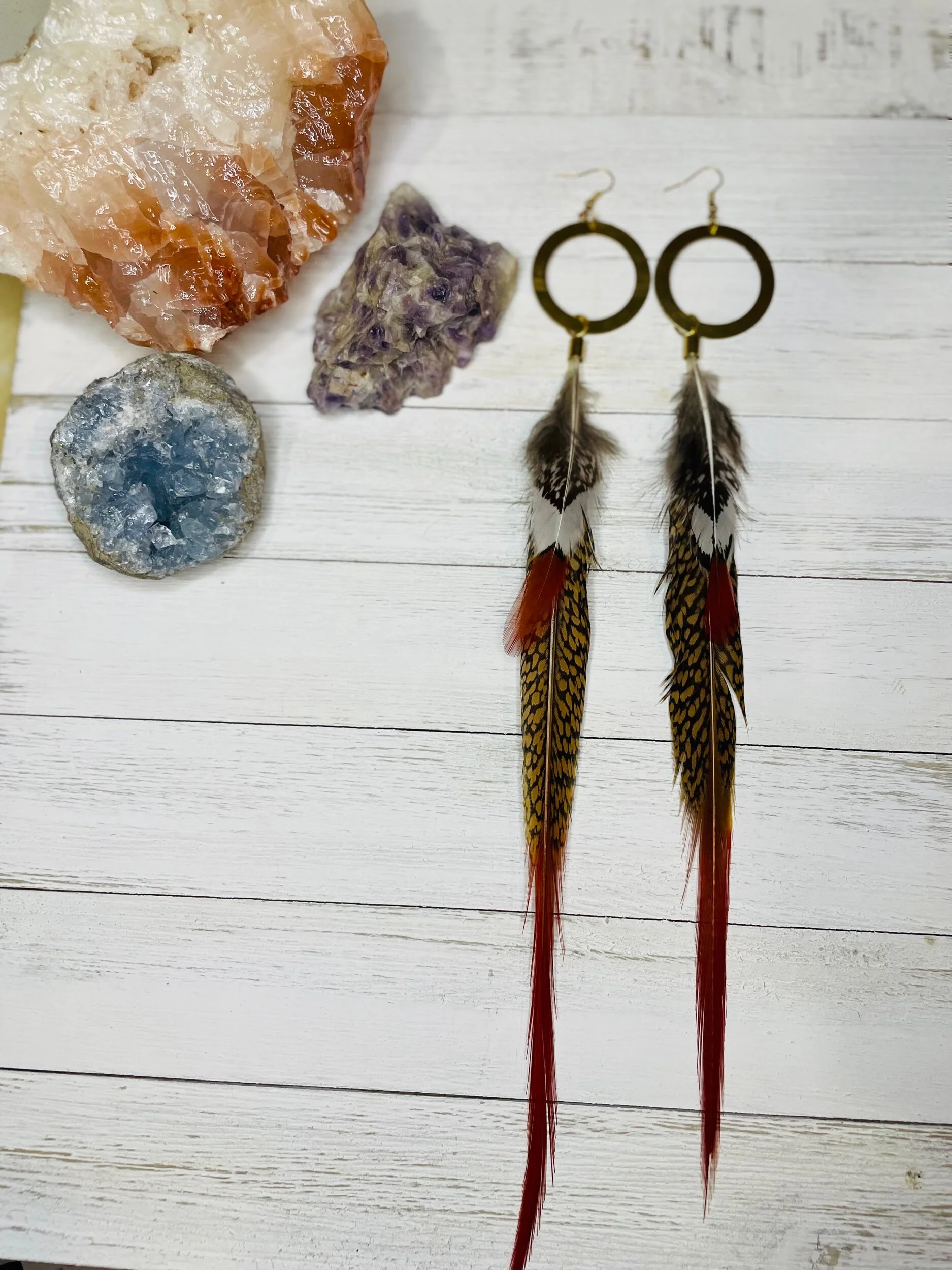 All Products Categories: All Gold All Blonde Brunette Silver Colors All | Gold | All | Blonde | Brunette | Silver | Colors | Red Stone Earrings $45.00 Gold with Golden Long Dark Feathers $88.00 Buddha Antique Balls~Long Feathered Earrings $50.00 Raccoon Antique Gold~Long Feathered Earrings $65.00 Antique Classic ~Feathered Earrings $70.00 Golden Sun Burst ~Long Feathered Earrings $70.00 White Golden Chain~Long Feathered Earrings $70.00 Square Boxed 16 Inch~xtra Long Feathered Earrings $70.00 Circled Gold Fall Feather $60.00 Gold Auburn ~12 inch Feathered Earrings $88.00 Golden Moon~ Long Feathered Earrings $70.00 Circus Color Gold Chain ~Long Feathered Earrings $70.00 Orange HoneyComb~-Long Feathered Earrings $70.00 Golden Raven Fox~Long Feathered Earrings $100.00 Gold Turquoise Earrings $45.00 Turquoise GoldB~Long Feathered Earrings $70.00 Pink Lady Rose Quartz~ Long Feathered Earrings $70.00 Turquoise Red and Blue Golden Charm Earrings $35.00 Wooden Fire Red ~Long Feathered Earrings $70.00 Turquoise Golden Coins ~ Long Feathered Earrings $70.00 Red Magnesite Gold Earrings $45.00 Golden Onyx Moon Earrings $28.00 Gold and Black Earrings $30.00 Golden Circle Moon Earrings $35.00 Blue Tigers Eye~ Long Feathered Earrings $75.00 Silver Tree~ Long Feathered Earrings $75.00 Silver Drop ~ Long Feathered Earrings $65.00 Black Onyx Fox~Feathered Earrings $40.00 UofU ~Feathered Earrings $30.00 Golden Egyptian ~Feathered Earrings $50.00 Raccoon Golden Circles~Feathered Earrings $22.00 Beaded Small Fox~ Feathered Earrings $45.00 Dark whip ~ Feathered Earrings $15.00 Round Gold Fox ~Feathered Earrings $45.00 Pink Ladies ~Long Feathered Earrings $70.00 Silver Drop ~Long Feathered Earrings $70.00 Silver Rainbow ~Long Feathered Earrings $70.00 Raven Bird ~Long Feathered Earrings $100.00 Vanilla Blonde ~Long Feathered Earrings $88.00 White Gold Circled Feathered Earrings from $50.00 Auburn Fall ~Long Feathered Earrings $88.00 White Antique Raven ~Long Feathered Earrings $88.00