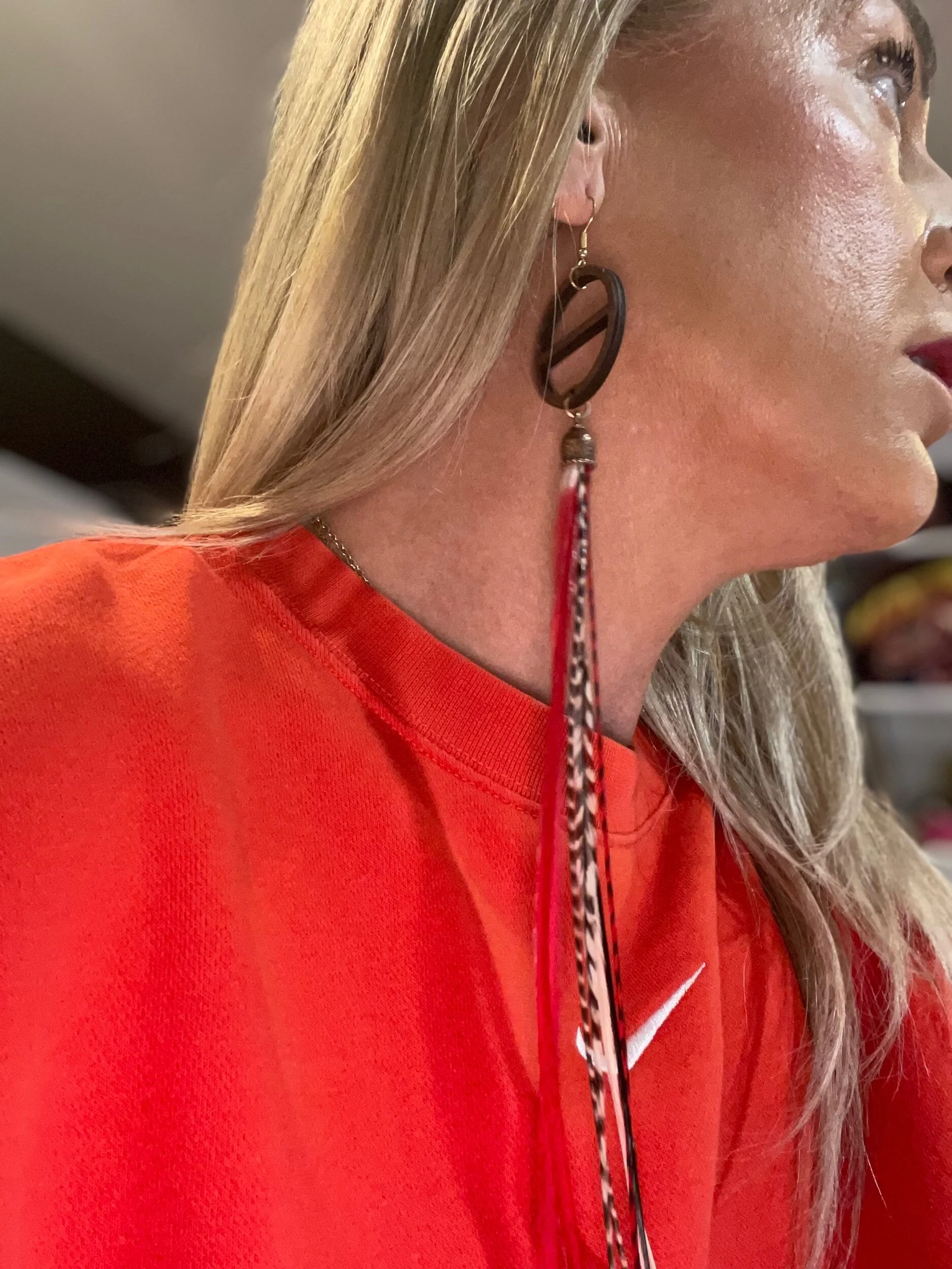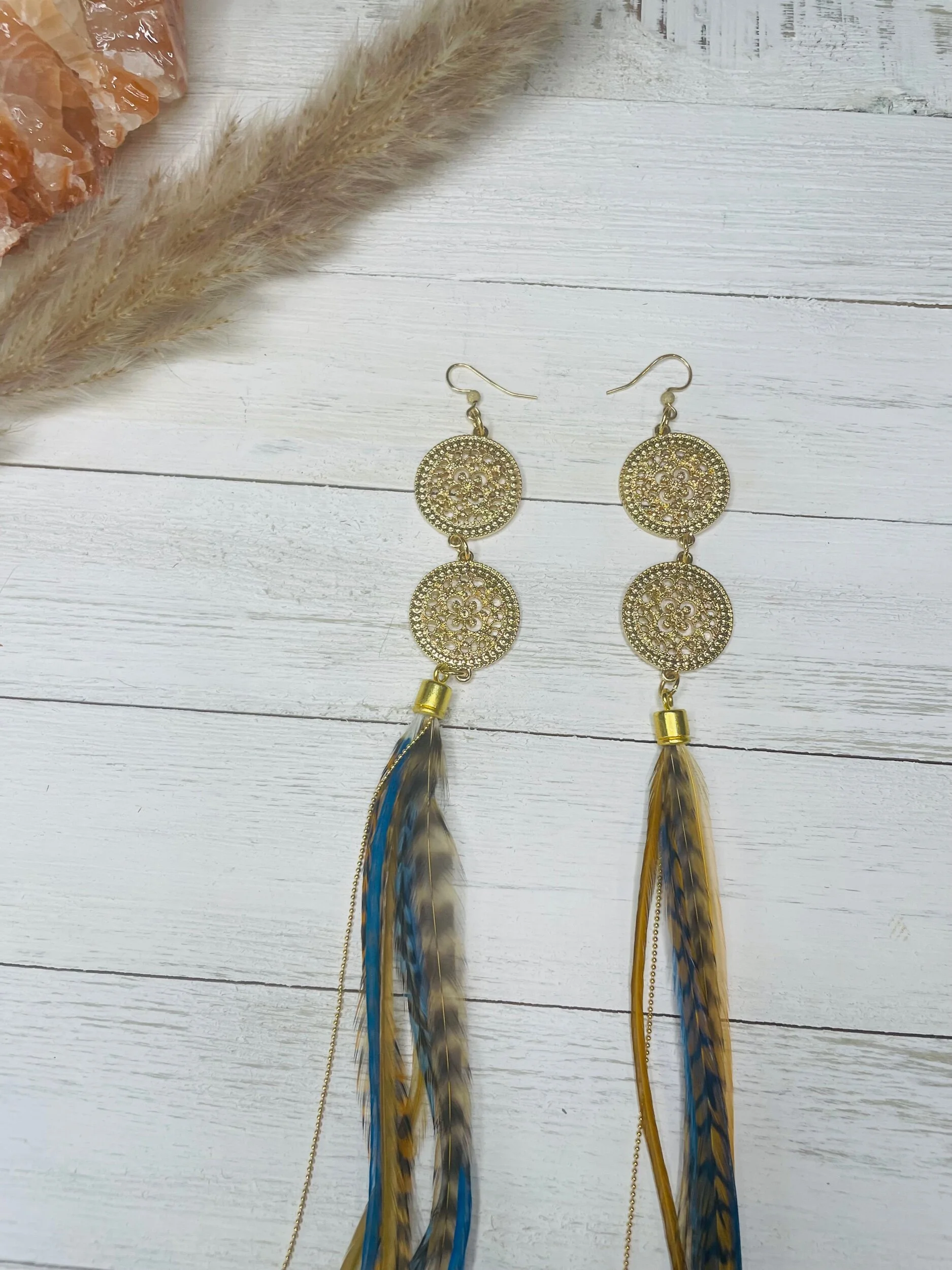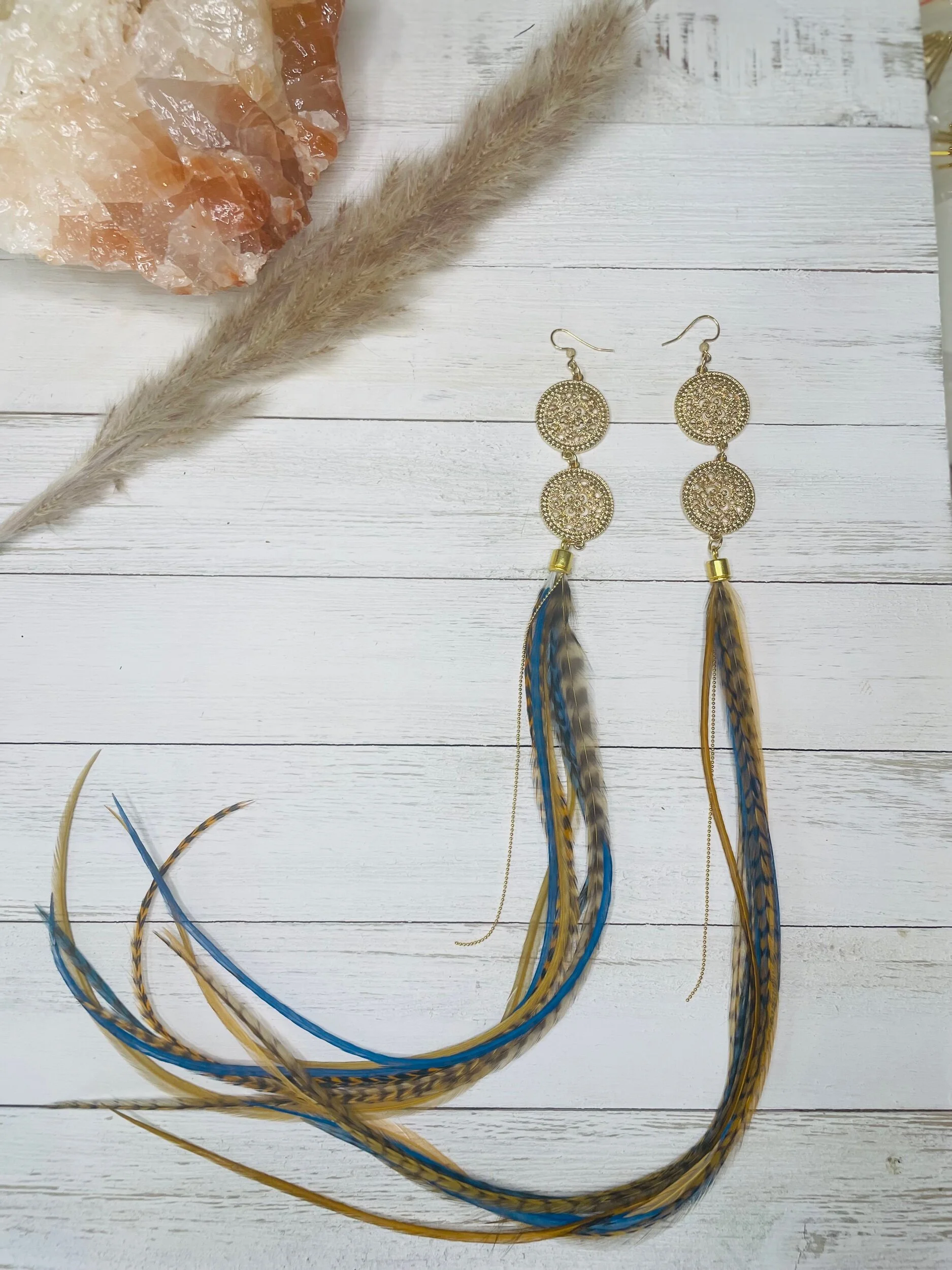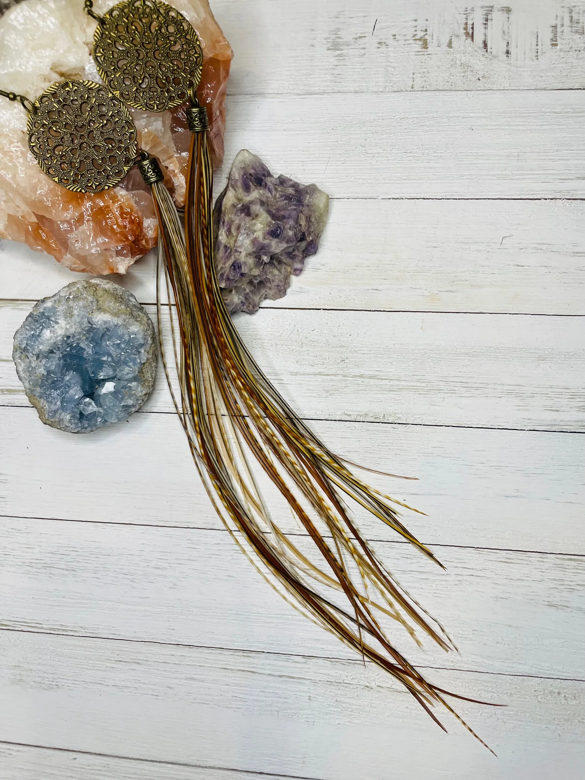All Products Categories: All Gold All Blonde Brunette Silver Colors All | Gold | All | Blonde | Brunette | Silver | Colors | Red Stone Earrings $45.00 Gold with Golden Long Dark Feathers $88.00 Buddha Antique Balls~Long Feathered Earrings $50.00 Raccoon Antique Gold~Long Feathered Earrings $65.00 Antique Classic ~Feathered Earrings $70.00 Golden Sun Burst ~Long Feathered Earrings $70.00 White Golden Chain~Long Feathered Earrings $70.00 Square Boxed 16 Inch~xtra Long Feathered Earrings $70.00 Circled Gold Fall Feather $60.00 Gold Auburn ~12 inch Feathered Earrings $88.00 Golden Moon~ Long Feathered Earrings $70.00 Circus Color Gold Chain ~Long Feathered Earrings $70.00 Orange HoneyComb~-Long Feathered Earrings $70.00 Golden Raven Fox~Long Feathered Earrings $100.00 Gold Turquoise Earrings $45.00 Turquoise GoldB~Long Feathered Earrings $70.00 Pink Lady Rose Quartz~ Long Feathered Earrings $70.00 Turquoise Red and Blue Golden Charm Earrings $35.00 Wooden Fire Red ~Long Feathered Earrings $70.00 Turquoise Golden Coins ~ Long Feathered Earrings $70.00 Red Magnesite Gold Earrings $45.00 Golden Onyx Moon Earrings $28.00 Gold and Black Earrings $30.00 Golden Circle Moon Earrings $35.00 Blue Tigers Eye~ Long Feathered Earrings $75.00 Silver Tree~ Long Feathered Earrings $75.00 Silver Drop ~ Long Feathered Earrings $65.00 Black Onyx Fox~Feathered Earrings $40.00 UofU ~Feathered Earrings $30.00 Golden Egyptian ~Feathered Earrings $50.00 Raccoon Golden Circles~Feathered Earrings $22.00 Beaded Small Fox~ Feathered Earrings $45.00 Dark whip ~ Feathered Earrings $15.00 Round Gold Fox ~Feathered Earrings $45.00 Pink Ladies ~Long Feathered Earrings $70.00 Silver Drop ~Long Feathered Earrings $70.00 Silver Rainbow ~Long Feathered Earrings $70.00 Raven Bird ~Long Feathered Earrings $100.00 Vanilla Blonde ~Long Feathered Earrings $88.00 White Gold Circled Feathered Earrings from $50.00 Auburn Fall ~Long Feathered Earrings $88.00 White Antique Raven ~Long Feathered Earrings $88.00