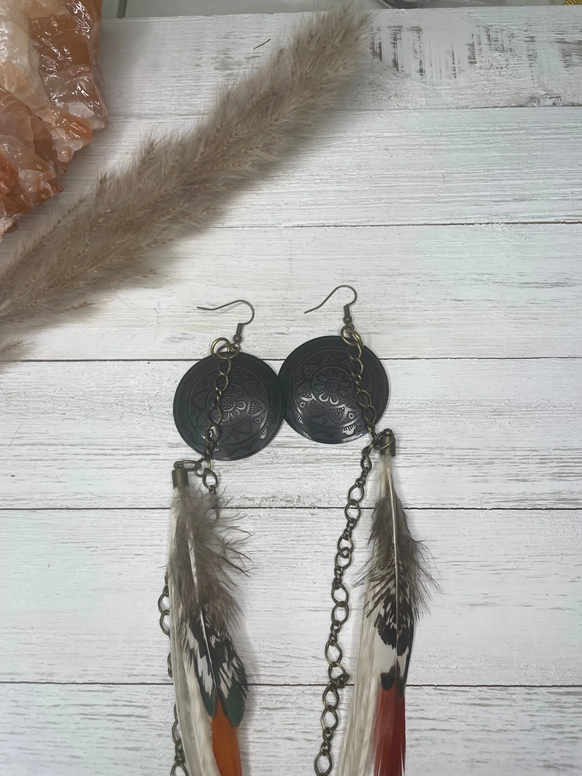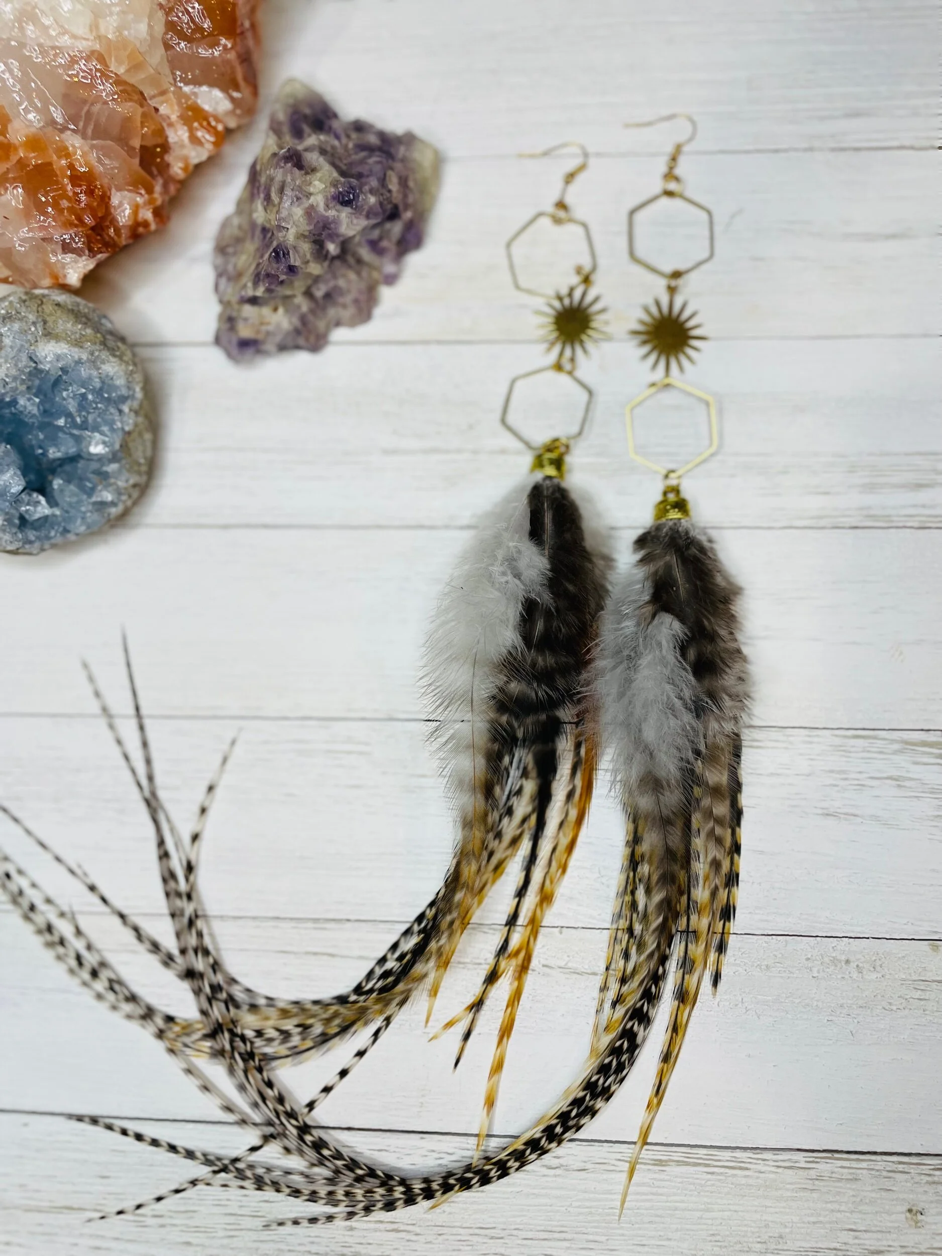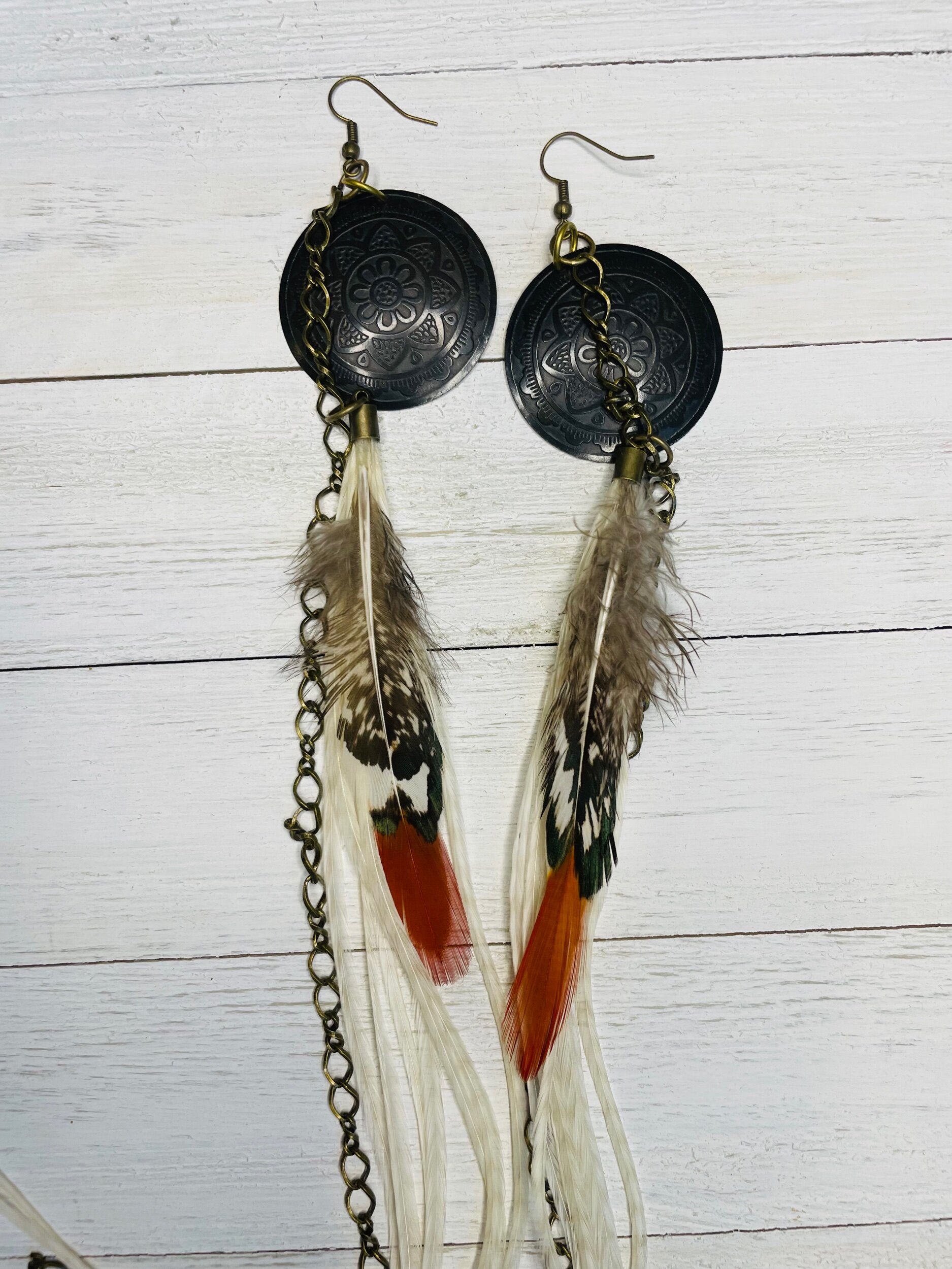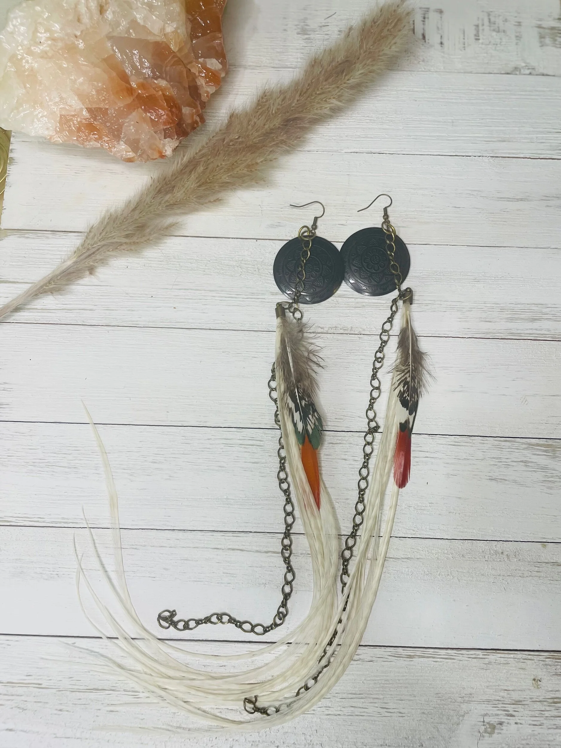 All Products Categories: All Gold All Blonde Brunette Silver Colors All | Gold | All | Blonde | Brunette | Silver | Colors | Red Stone Earrings $45.00 Gold with Golden Long Dark Feathers $88.00 Buddha Antique Balls~Long Feathered Earrings $50.00 Raccoon Antique Gold~Long Feathered Earrings $65.00 Antique Classic ~Feathered Earrings $70.00 Golden Sun Burst ~Long Feathered Earrings $70.00 White Golden Chain~Long Feathered Earrings $70.00 Square Boxed 16 Inch~xtra Long Feathered Earrings $70.00 Circled Gold Fall Feather $60.00 Gold Auburn ~12 inch Feathered Earrings $88.00 Golden Moon~ Long Feathered Earrings $70.00 Circus Color Gold Chain ~Long Feathered Earrings $70.00 Orange HoneyComb~-Long Feathered Earrings $70.00 Golden Raven Fox~Long Feathered Earrings $100.00 Gold Turquoise Earrings $45.00 Turquoise GoldB~Long Feathered Earrings $70.00 Pink Lady Rose Quartz~ Long Feathered Earrings $70.00 Turquoise Red and Blue Golden Charm Earrings $35.00 Wooden Fire Red ~Long Feathered Earrings $70.00 Turquoise Golden Coins ~ Long Feathered Earrings $70.00 Red Magnesite Gold Earrings $45.00 Golden Onyx Moon Earrings $28.00 Gold and Black Earrings $30.00 Golden Circle Moon Earrings $35.00 Blue Tigers Eye~ Long Feathered Earrings $75.00 Silver Tree~ Long Feathered Earrings $75.00 Silver Drop ~ Long Feathered Earrings $65.00 Black Onyx Fox~Feathered Earrings $40.00 UofU ~Feathered Earrings $30.00 Golden Egyptian ~Feathered Earrings $50.00 Raccoon Golden Circles~Feathered Earrings $22.00 Beaded Small Fox~ Feathered Earrings $45.00 Dark whip ~ Feathered Earrings $15.00 Round Gold Fox ~Feathered Earrings $45.00 Pink Ladies ~Long Feathered Earrings $70.00 Silver Drop ~Long Feathered Earrings $70.00 Silver Rainbow ~Long Feathered Earrings $70.00 Raven Bird ~Long Feathered Earrings $100.00 Vanilla Blonde ~Long Feathered Earrings $88.00 White Gold Circled Feathered Earrings from $50.00 Auburn Fall ~Long Feathered Earrings $88.00 White Antique Raven ~Long Feathered Earrings $88.00