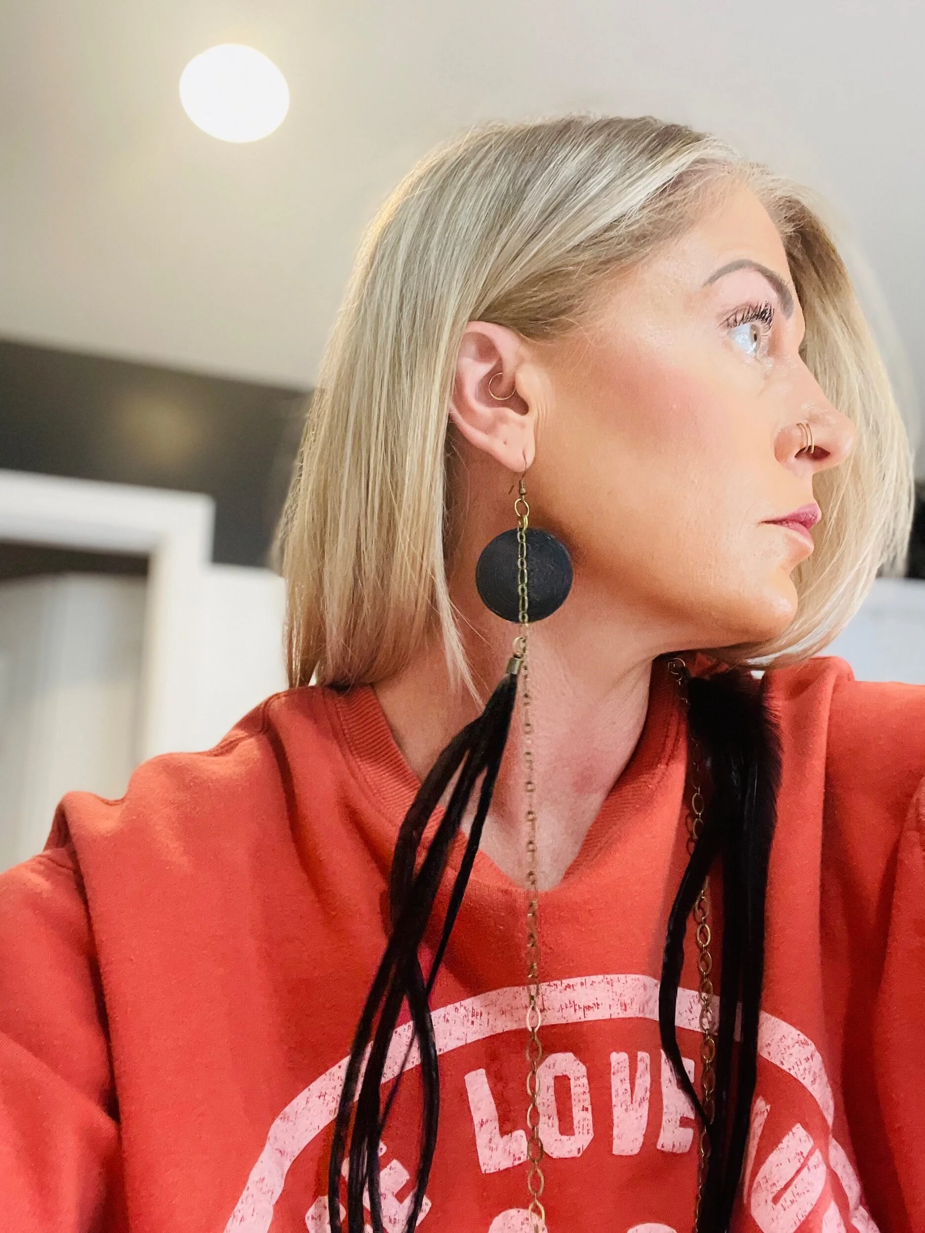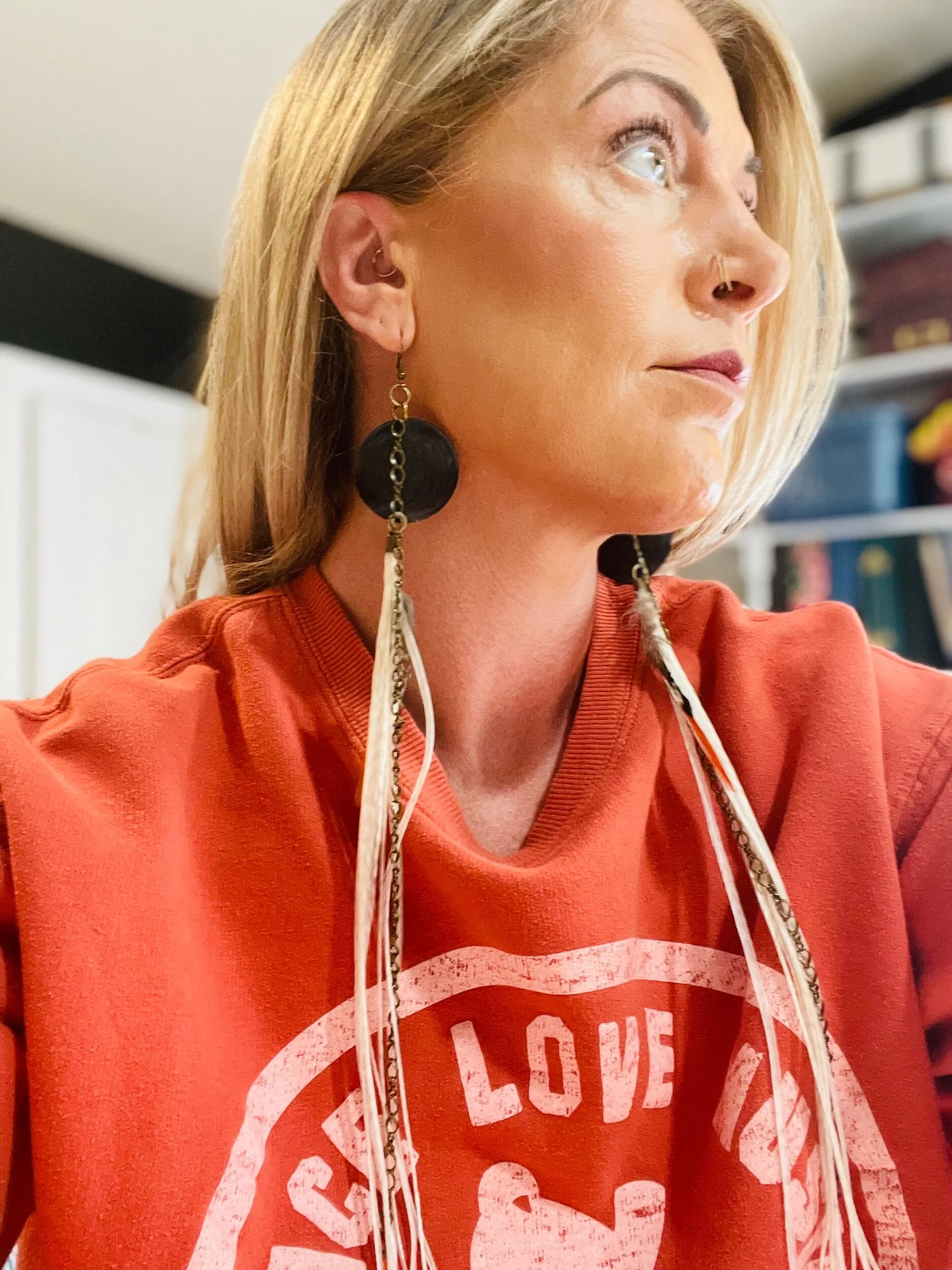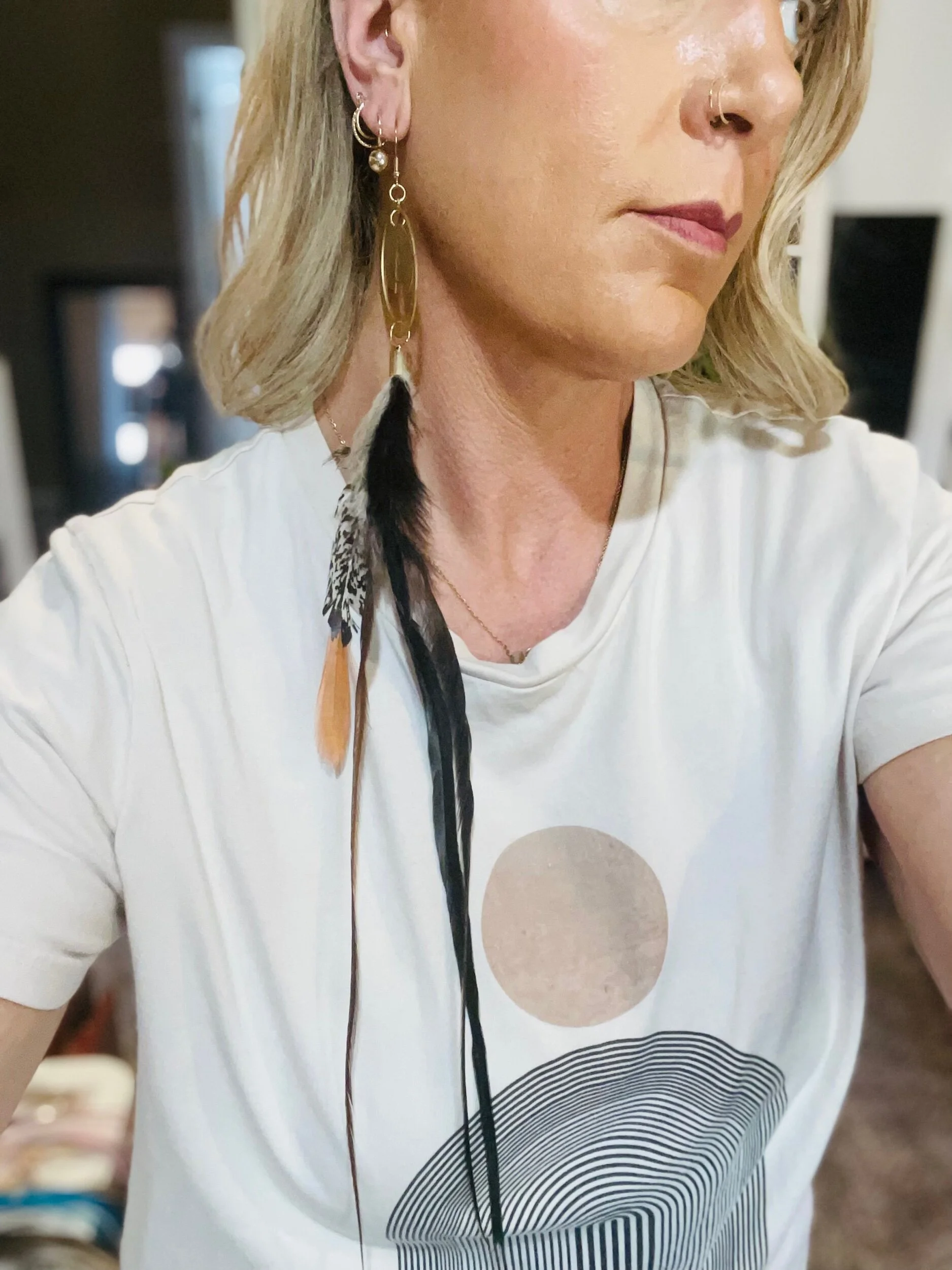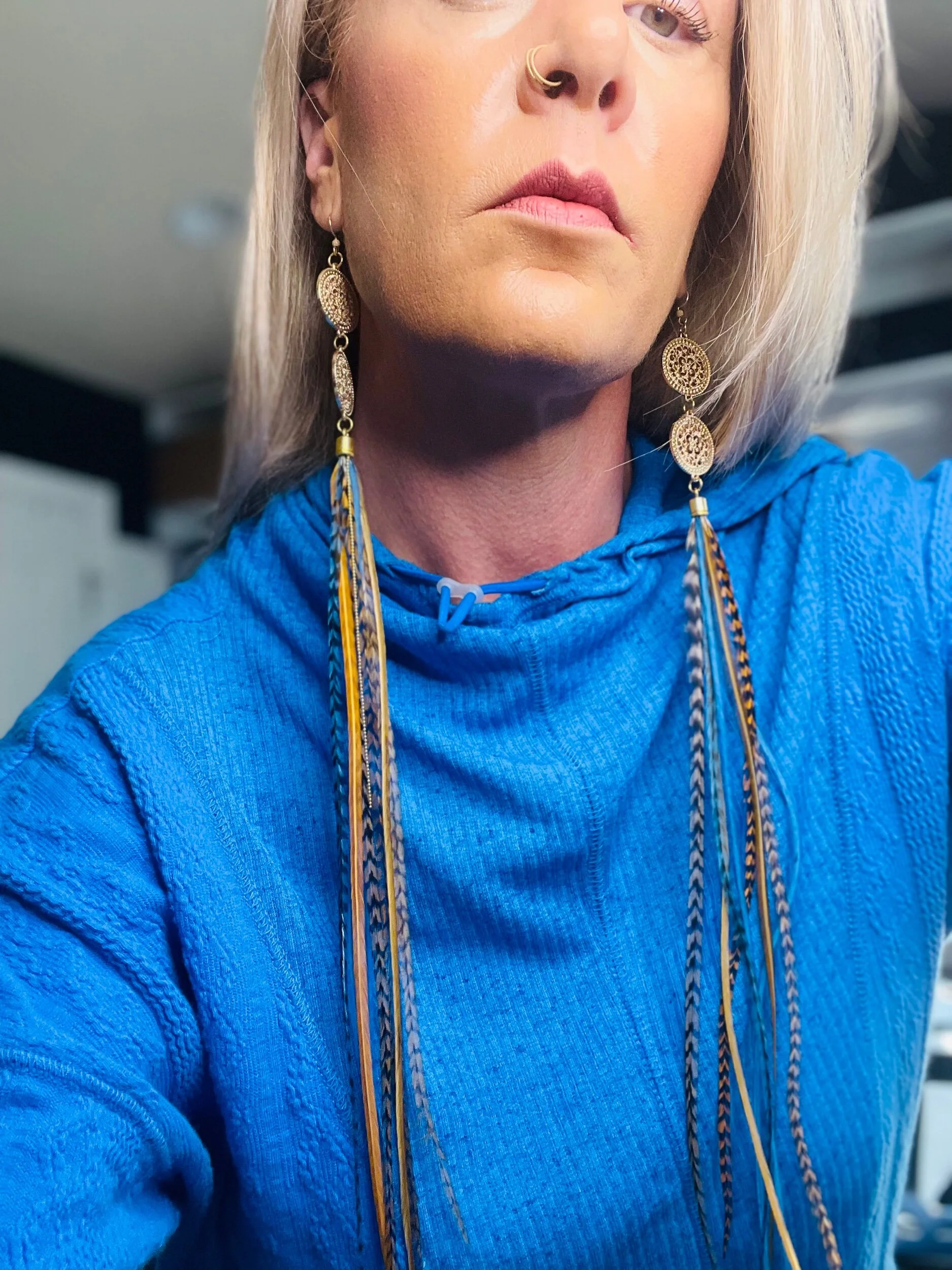 All Products Categories: All Gold All Blonde Brunette Silver Colors All | Gold | All | Blonde | Brunette | Silver | Colors | Red Stone Earrings $45.00 Gold with Golden Long Dark Feathers $88.00 Buddha Antique Balls~Long Feathered Earrings $50.00 Raccoon Antique Gold~Long Feathered Earrings $65.00 Antique Classic ~Feathered Earrings $70.00 Golden Sun Burst ~Long Feathered Earrings $70.00 White Golden Chain~Long Feathered Earrings $70.00 Square Boxed 16 Inch~xtra Long Feathered Earrings $70.00 Circled Gold Fall Feather $60.00 Gold Auburn ~12 inch Feathered Earrings $88.00 Golden Moon~ Long Feathered Earrings $70.00 Circus Color Gold Chain ~Long Feathered Earrings $70.00 Orange HoneyComb~-Long Feathered Earrings $70.00 Golden Raven Fox~Long Feathered Earrings $100.00 Gold Turquoise Earrings $45.00 Turquoise GoldB~Long Feathered Earrings $70.00 Pink Lady Rose Quartz~ Long Feathered Earrings $70.00 Turquoise Red and Blue Golden Charm Earrings $35.00 Wooden Fire Red ~Long Feathered Earrings $70.00 Turquoise Golden Coins ~ Long Feathered Earrings $70.00 Red Magnesite Gold Earrings $45.00 Golden Onyx Moon Earrings $28.00 Gold and Black Earrings $30.00 Golden Circle Moon Earrings $35.00 Blue Tigers Eye~ Long Feathered Earrings $75.00 Silver Tree~ Long Feathered Earrings $75.00 Silver Drop ~ Long Feathered Earrings $65.00 Black Onyx Fox~Feathered Earrings $40.00 UofU ~Feathered Earrings $30.00 Golden Egyptian ~Feathered Earrings $50.00 Raccoon Golden Circles~Feathered Earrings $22.00 Beaded Small Fox~ Feathered Earrings $45.00 Dark whip ~ Feathered Earrings $15.00 Round Gold Fox ~Feathered Earrings $45.00 Pink Ladies ~Long Feathered Earrings $70.00 Silver Drop ~Long Feathered Earrings $70.00 Silver Rainbow ~Long Feathered Earrings $70.00 Raven Bird ~Long Feathered Earrings $100.00 Vanilla Blonde ~Long Feathered Earrings $88.00 White Gold Circled Feathered Earrings from $50.00 Auburn Fall ~Long Feathered Earrings $88.00 White Antique Raven ~Long Feathered Earrings $88.00